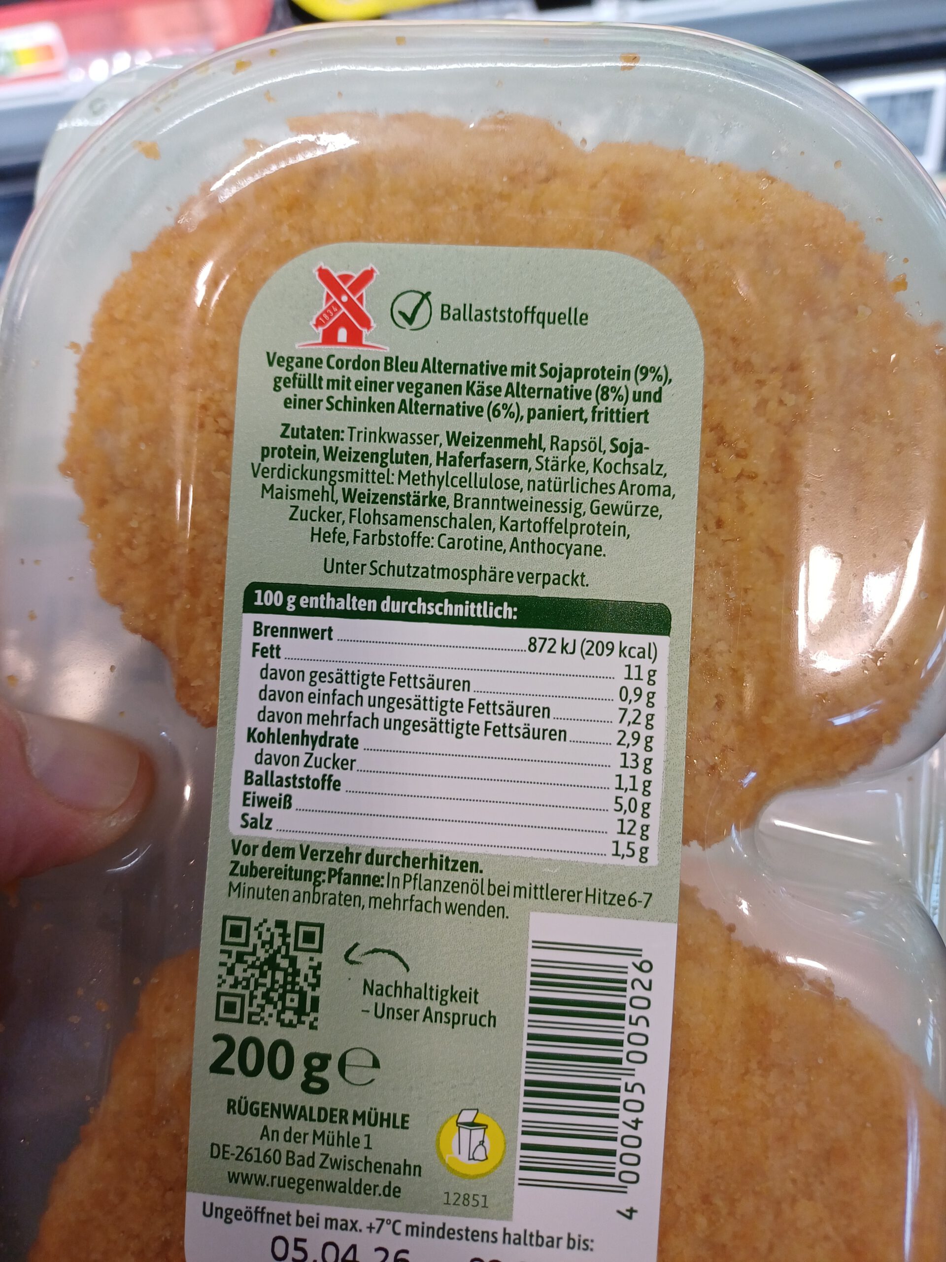 Ein Beispiel, nehmen wir den auf dem Bild gezeigten veganen Schnitzel-Ersatz, als Vertreter für jedes industriell stark verarbeitete Produkt.